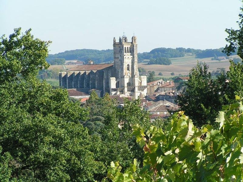 La Cathédrale Saint-Pierre, comparable à « un vaisseau de pierre dorée aux profonds contreforts » donne l'aspect, vue de loin, d'une église forteresse. Elle domine la ville de Condom et regarde, à ses pieds couler la Baïse.