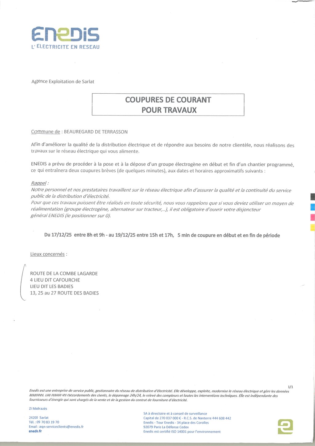 COUPURES DE COURANT POUR TRAVAUX ENEDIS