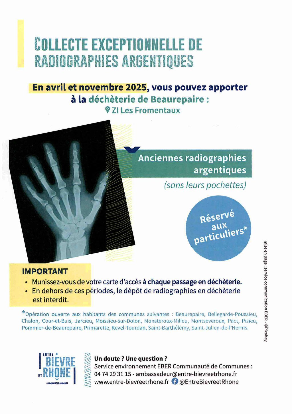 - En dehors de ces périodes, le dépôt de radiographies en déchèterie est interdit
