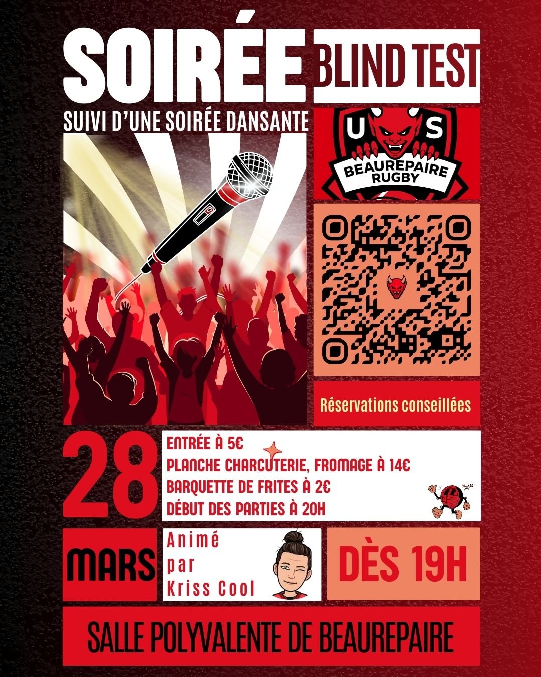 L'U.S Beaurepaire Rugby organise une soirée blind test suivie d'une soirée dansante :