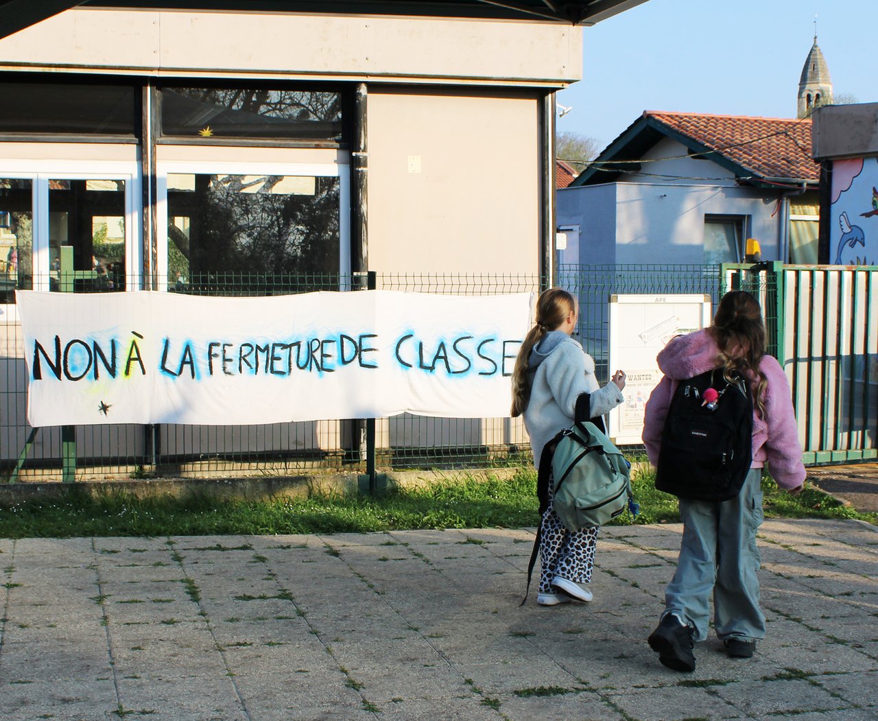 Ce matin, les familles, enfants, élus, délégués de parents d'élèves se sont rassemblés devant l'école pour exprimer leur opposition à ce projet.