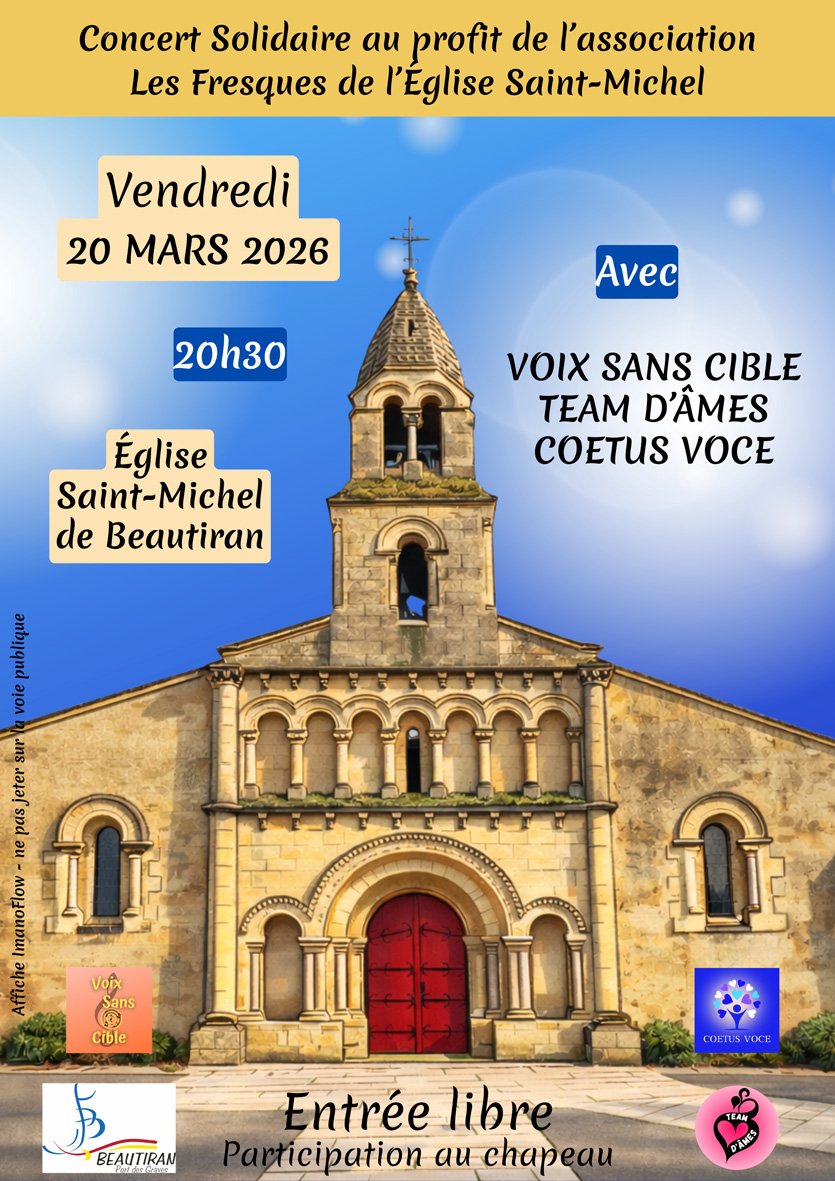 L'association beautiranaise "Les fresques de l'église Saint-Michel" organise un concert pour collecter des fonds afin de lancer la rénovation des fresques de l'église de la commune.