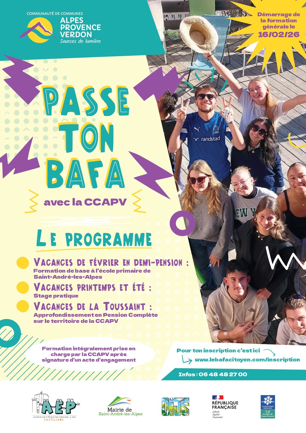 Comme en 2024, la CCAPV proposera une session de formation locale au BAFA (Brevet d’Aptitude aux Fonctions d’Animateur) en 2026. Celle-ci sera entièrement prise en charge pour les habitants du territoire, à condition de finaliser son cycle de formation. Cette proposition vise en effet à satisfaire les besoins de recrutements récurrents des services périscolaires communaux ainsi que des centres de loisirs intervenant durant les vacances scolaires.