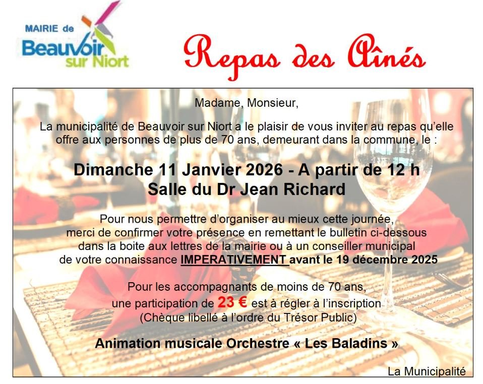 La municipalité vous invite à partager un repas le :