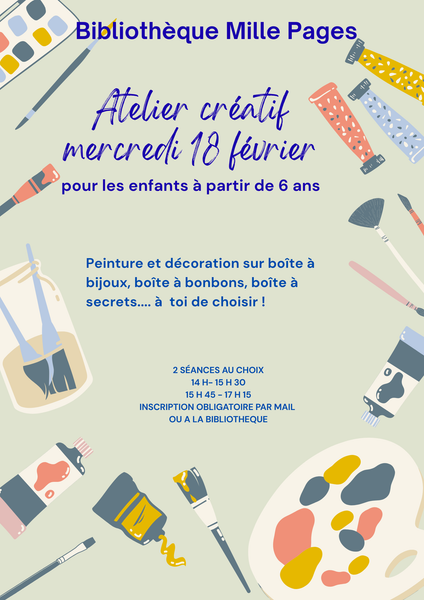La bibliothèque de Grisy vous propose un atelier créatif de peinture et décoration sur diverses boîtes : à bijoux, à bonbons, à secrets...