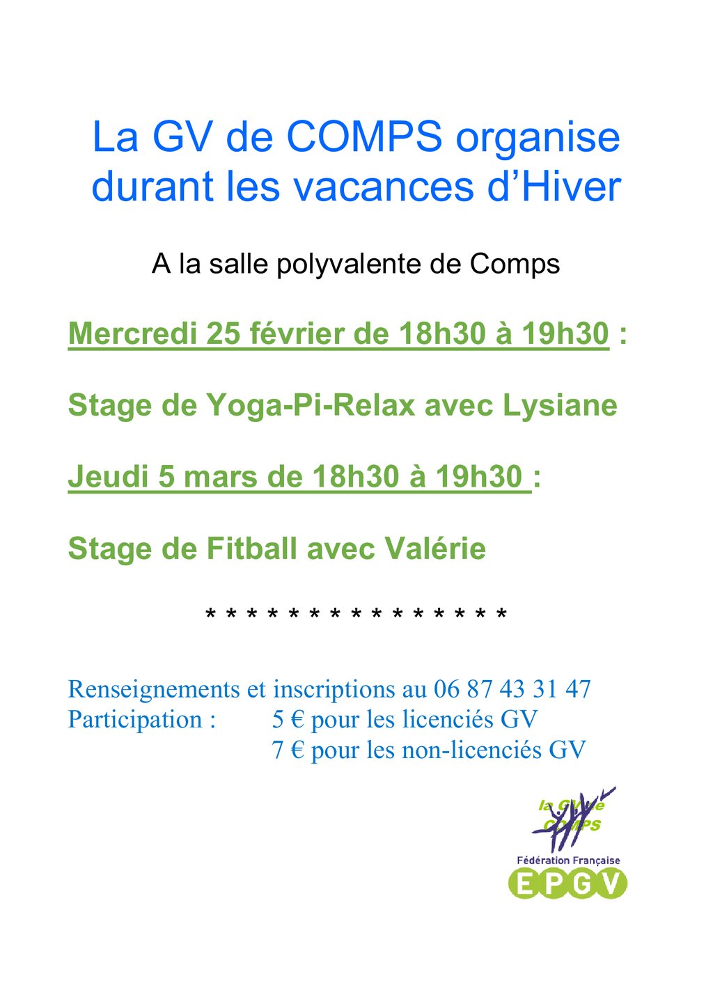 La gymnastique Volontaire de Comps vous propose un stage de Fitball.