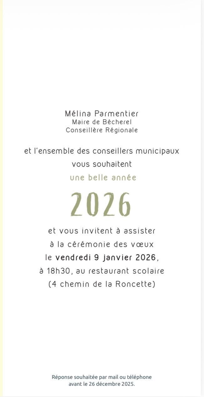 Avec l’ensemble du conseil municipal, nous vous souhaitons à tous, une très belle année 2026 pleine de santé et de projets.