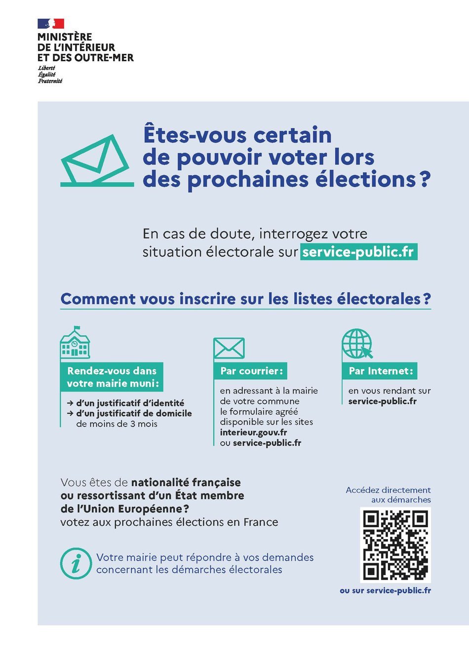 Pour vérifier son inscription sur les listes électorales : https://www.service-public.gouv.fr/particuliers/vosdroits/R51788