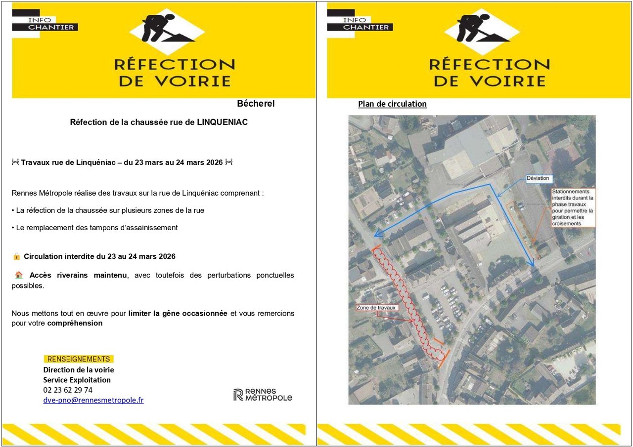RÉFECTION DE LA CHAUSSÉE RUE DE LINQUENIAC 🚧 TRAVAUX RUE DE LINQUÉNIAC – DU 23 MARS AU 24 MARS 2026 🚧