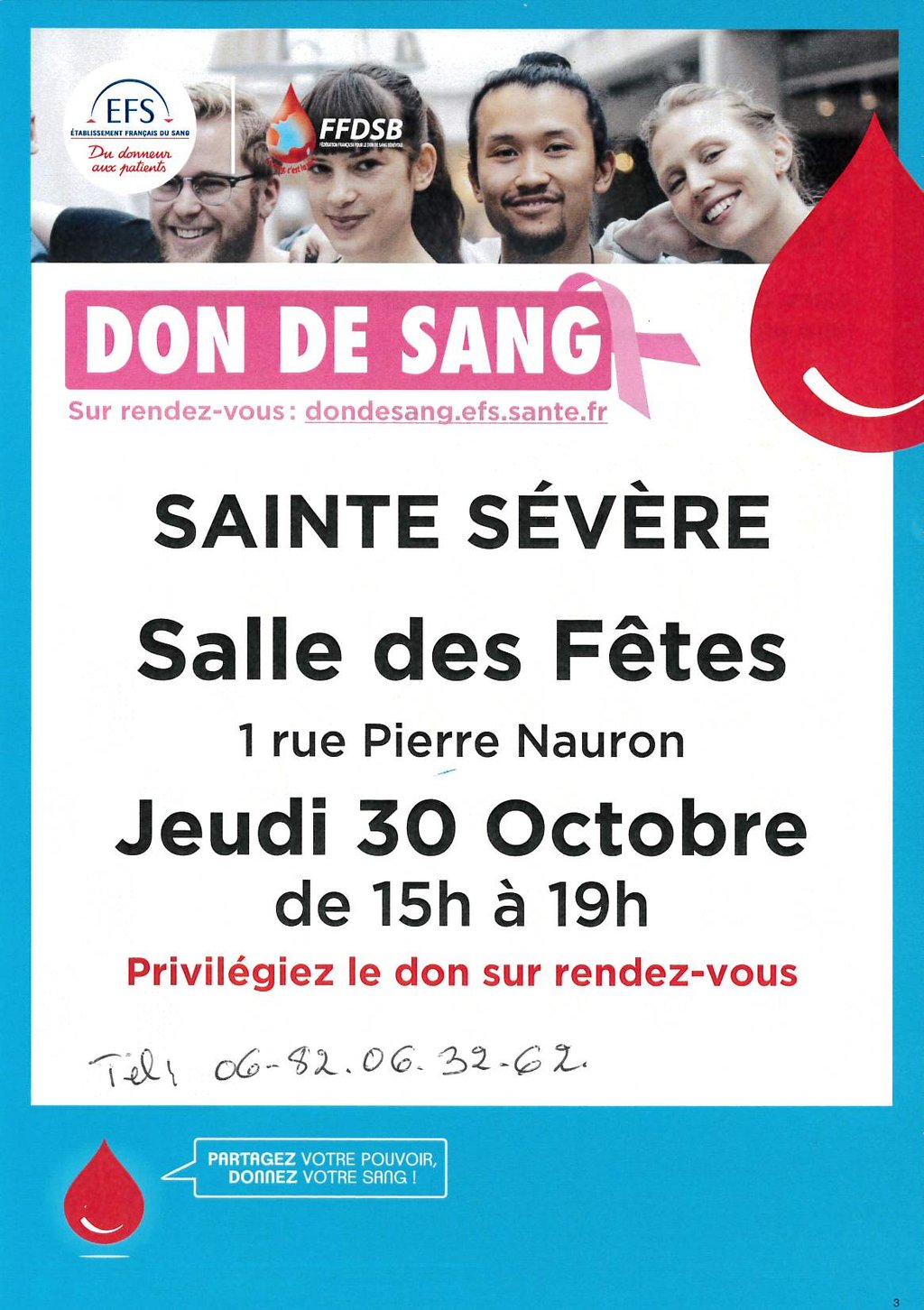 Prendre rendez-vous sur : dondesang.efs.sante.fr
