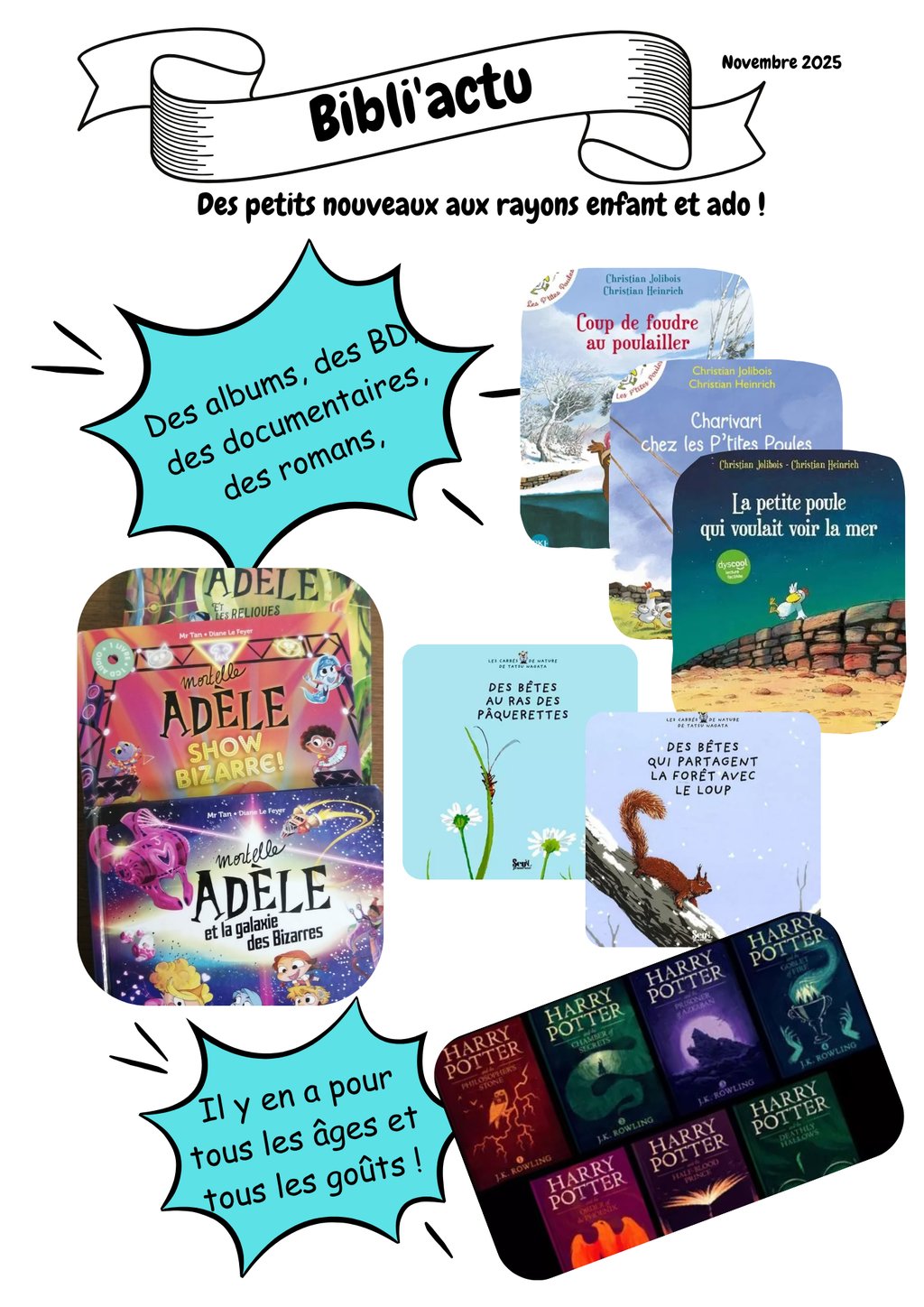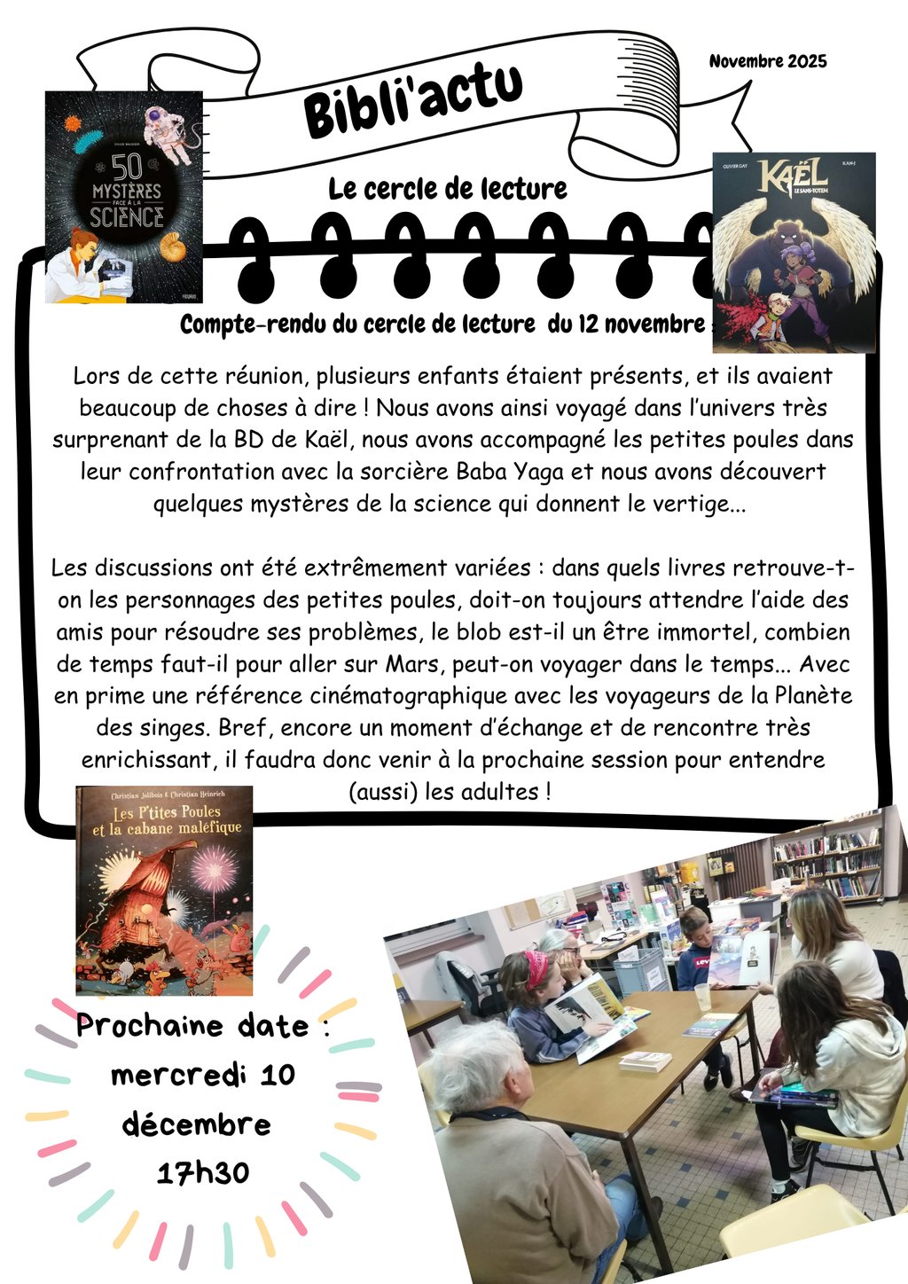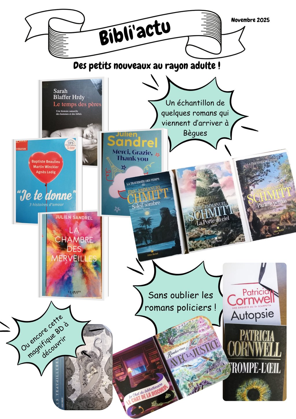 un échantillon des nouveautés arrivées dans votre bibliothèque et des nouvelles du cercle de lecture.