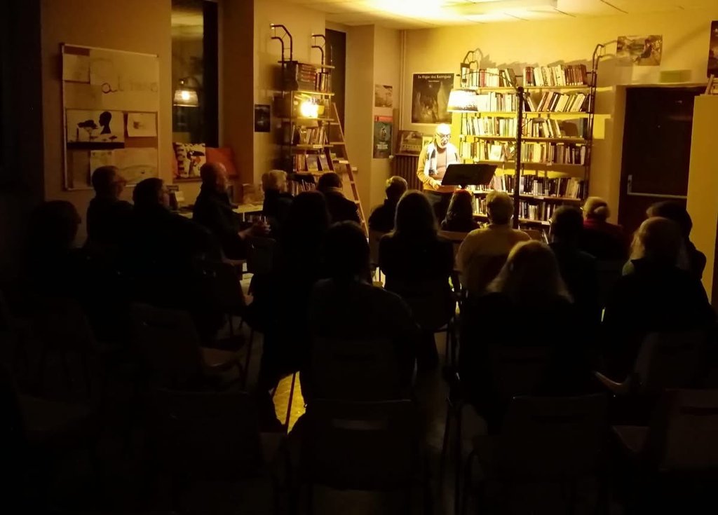 Le samedi 24 janvier Ă 18 H 00, la bibliothĂšque de BĂšgues a reçu Jean-Marc MARAVAL de lâassociation La Brouette en ScĂšne, pour de trĂšs belles lectures autour du thĂšme "Villes et campagnes".