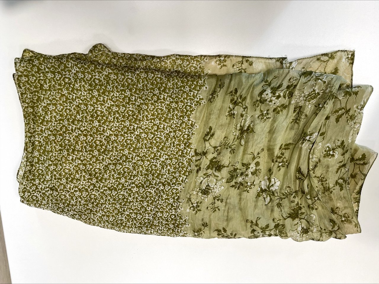 - 1 foulard fin sur les tons de vert et blanc, trouvé vers l'église.