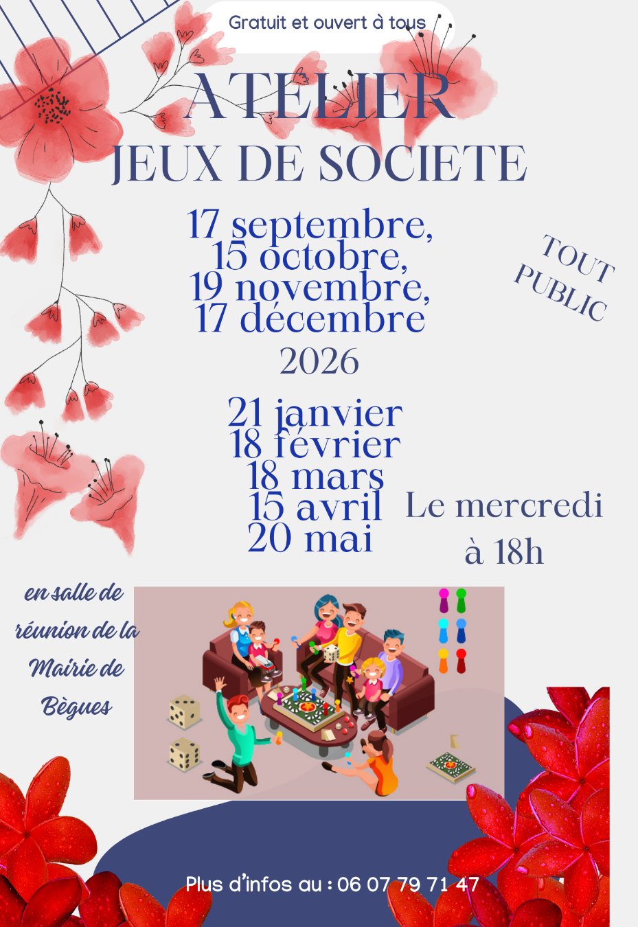 Venez nombreux nous rencontrer et partager vos jeux de société préférés ou découvrir ceux proposés sur place lors de ces prochaines éditions de l'Atelier jeux de Bègues. La bibliothèque propose aussi des jeux de société en prêt : venez les tester lors des ateliers jeux et empruntez-les !!