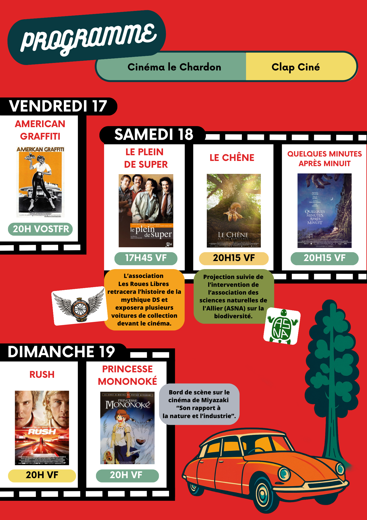 La 4ème édition du festival Cinéma mon Amour se déroulera du 17 au 19 octobre 2025 autour du thème « L’écorce et l’essence ». Ce rendez-vous culturel et cinématographique propose une programmation originale, mêlant films cultes, documentaires et cinéma d’animation, pour explorer le dialogue entre nature et automobile.
