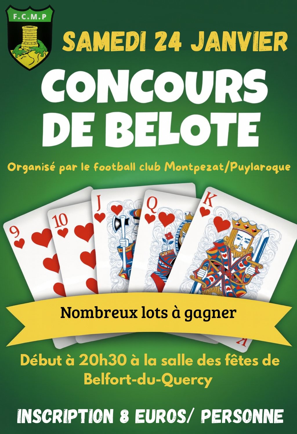 Nous vous attendons nombreux au concours de belote organisé par le football club de Montpezat / Puylaroque à Belfort.