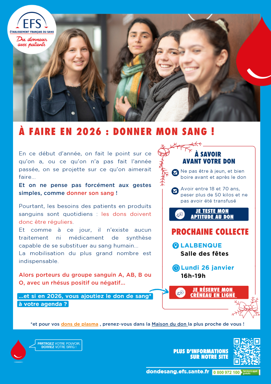 DON DE SANG À LALBENQUE LE 26 JANVIER 2026
