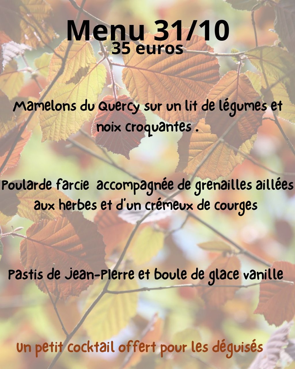 🎭 Un apéritif offert à tous les clients venus déguisés !