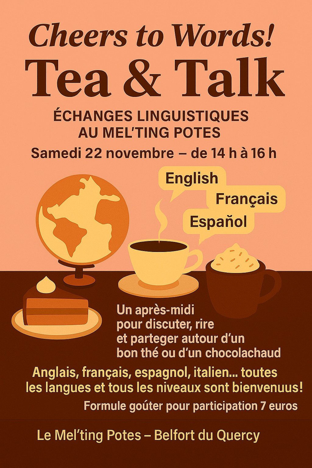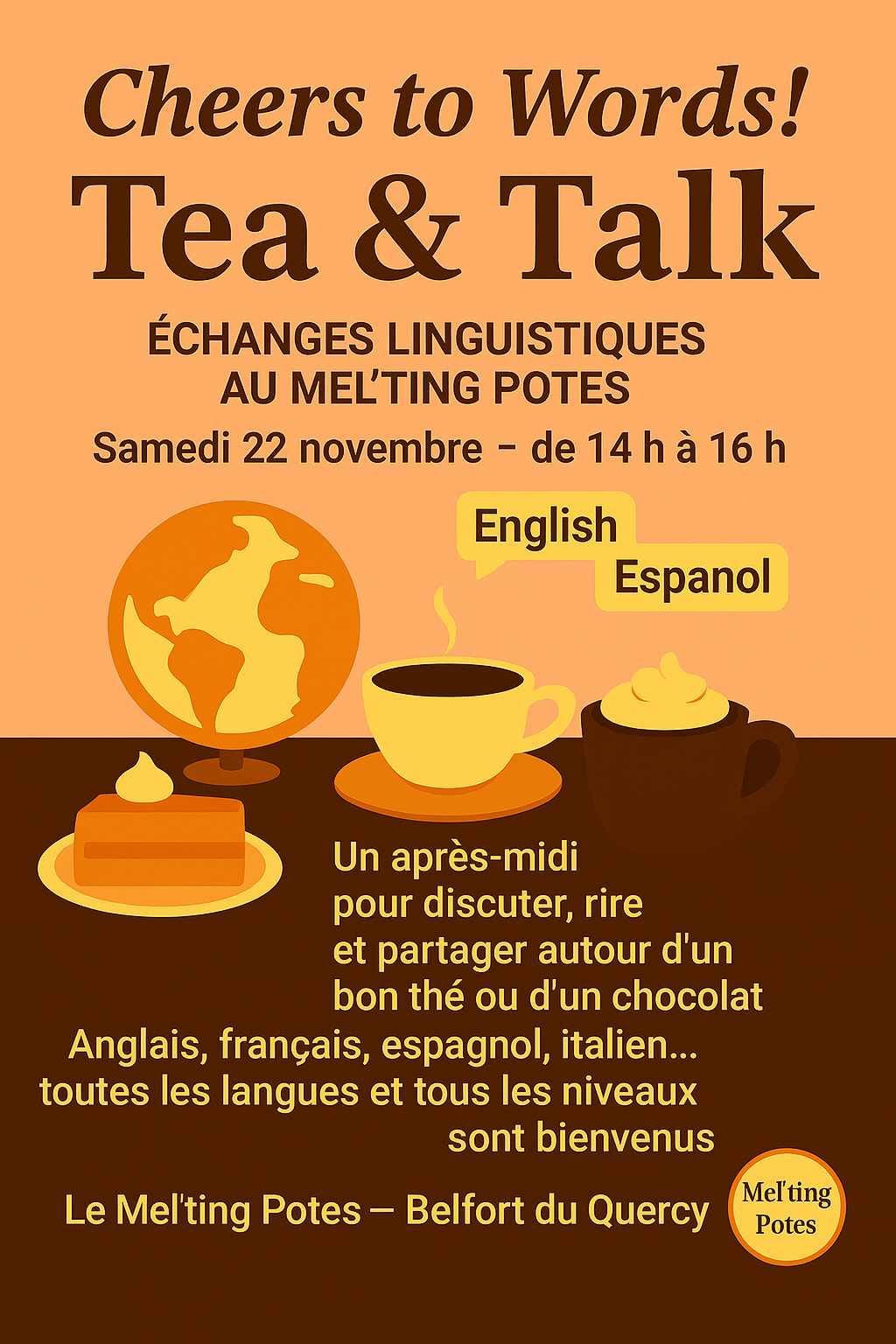 Rejoignez-nous pour un après-midi convivial d’échanges linguistiques autour d’un bon thé ou d’un chocolat chaud ☕🍰