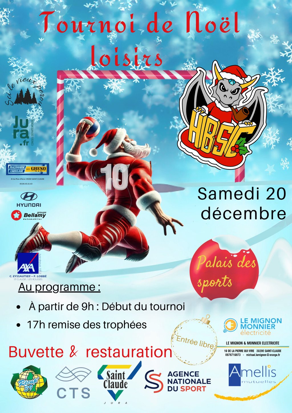 Le Handball Club Saint-Claude vous donne rendez-vous pour son grand Tournoi de Noël loisirs, au Palais des sports, ce samedi 20 décembre ! Une journée conviviale, sportive et festive ouverte à toutes et à tous ✨