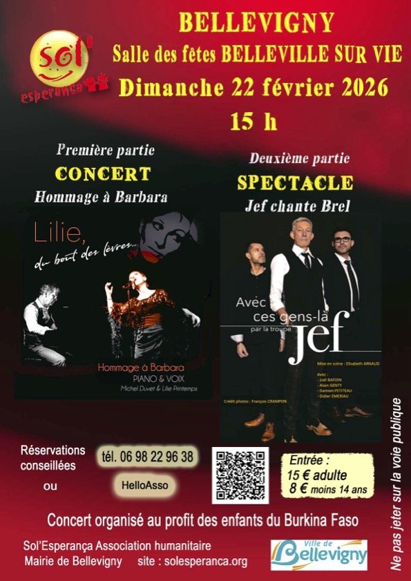L'association Sol'Esperança organise un concert au profit des enfants du Burkina Faso le dimanche 22 février 2026 à 15H :
