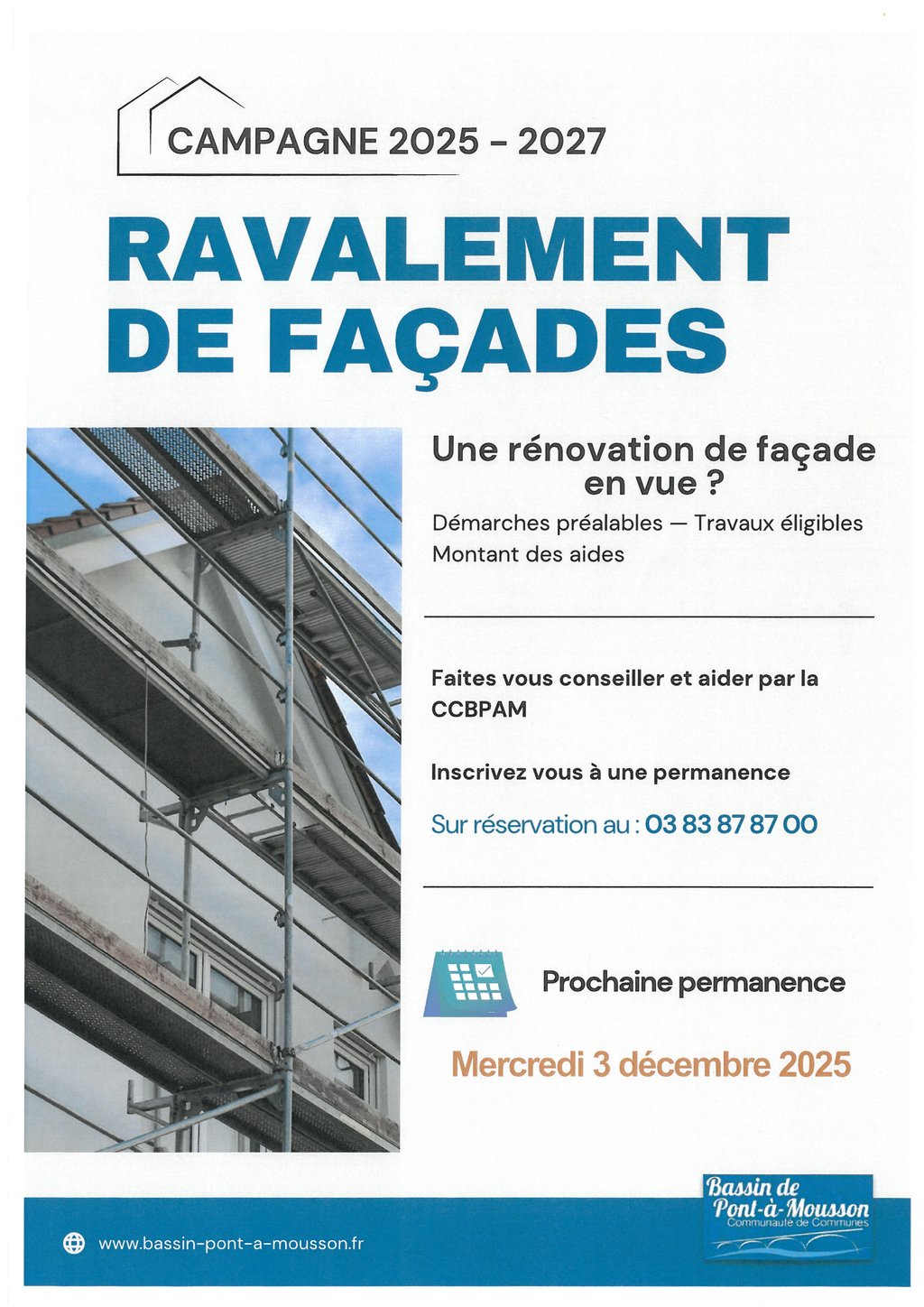 Mercredi 3 décembre (à Pagny-sur-Moselle de 10h à 12h, au siège de la CCBPAM de 13H30 à 15h30 et à Dieulouard de 16h à 17h)