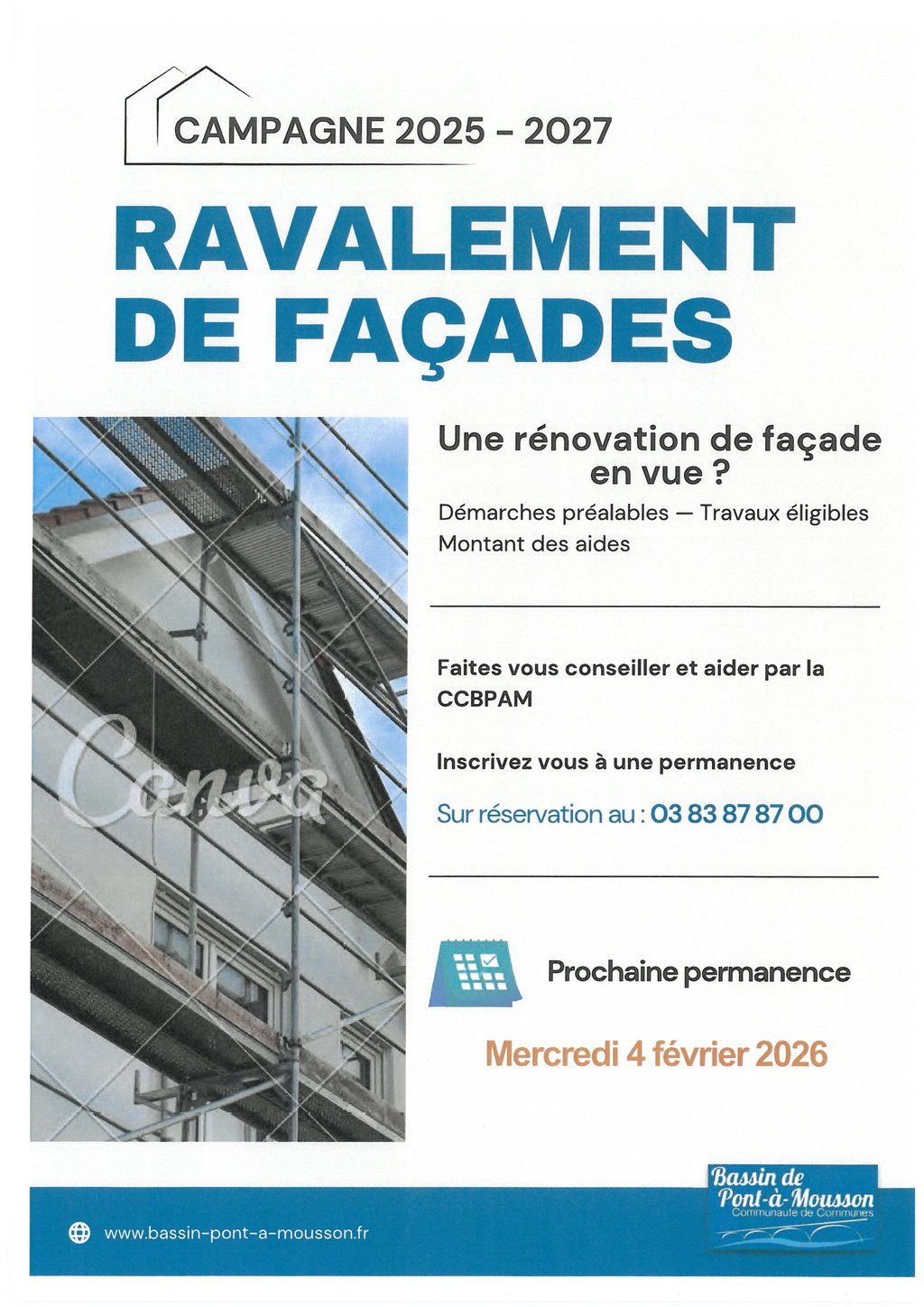 Mercredi 4 février 2026 (à Pagny-sur-Moselle de 10h à 12h, au siège de la CCBPAM de 13H30 à 15h30 et à Dieulouard de 16h à 17h)