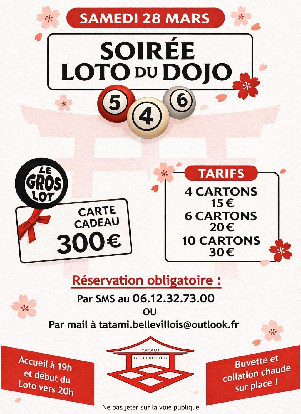 Réservation obligatoire : (sms) 06.12.32.73.00 ou par (mail) tatamis.bellevillois@outlook.fr