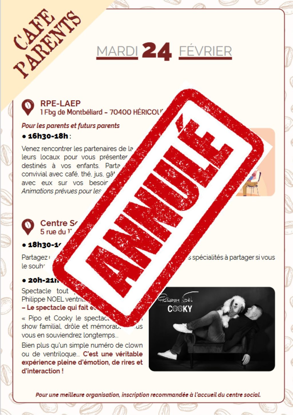 Cette rencontre se déroulera au Lieu d’accueil enfants-parents (1 faubourg de Montbéliard 70400 Héricourt), puis un repas et un spectacle (GRATUIT) vous seront proposés au Centre social municipal Simone Signoret (5 rue du 11 Novembre 70400 Héricourt).