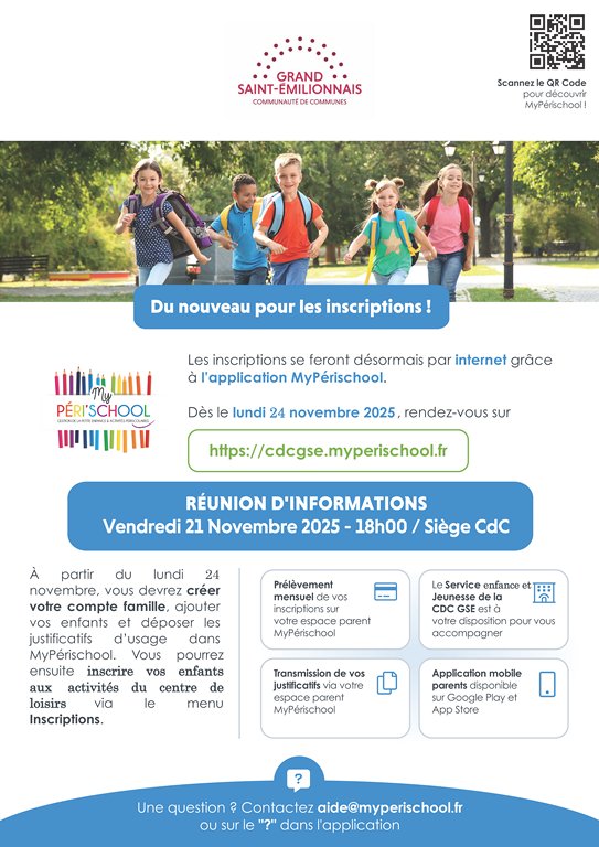 #CentresDeLoisirs #MyPerischool #Nouveauté #Inscriptions #Familles #GrandSaintÉmilionnais #ServiceEnfance #TransitionNumérique #Périscolaire #ApplicationFamille