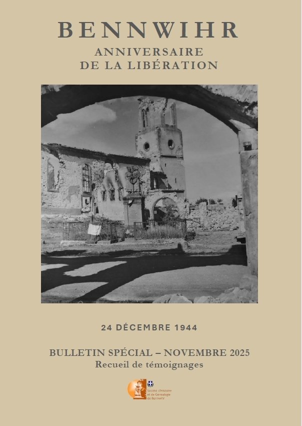 La Société d'Histoire et de Généalogie de Bennwihr a le plaisir de vous informer de la présentation de leur bulletin "spécial témoignages" le 11 novembre prochain, après la cérémonie patriotique.