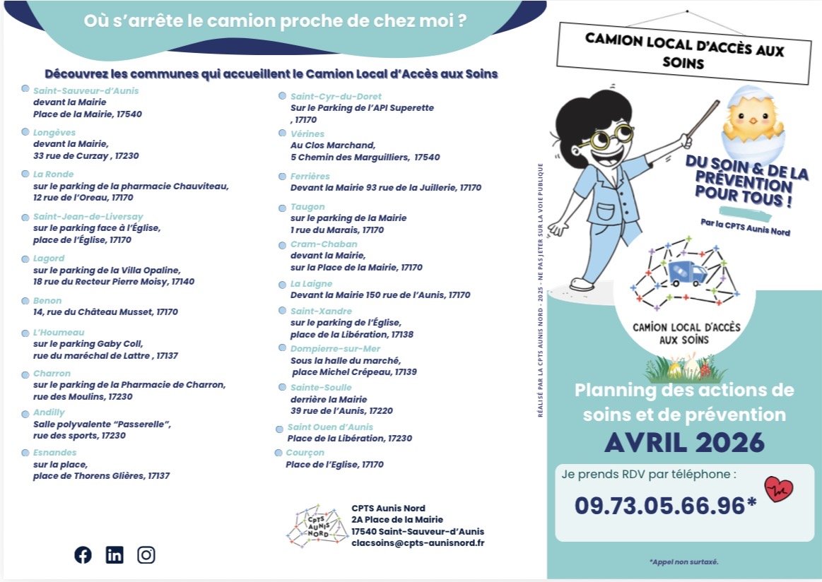 📍 Le Camion Local d’Accès aux Soins fait étape à Benon !