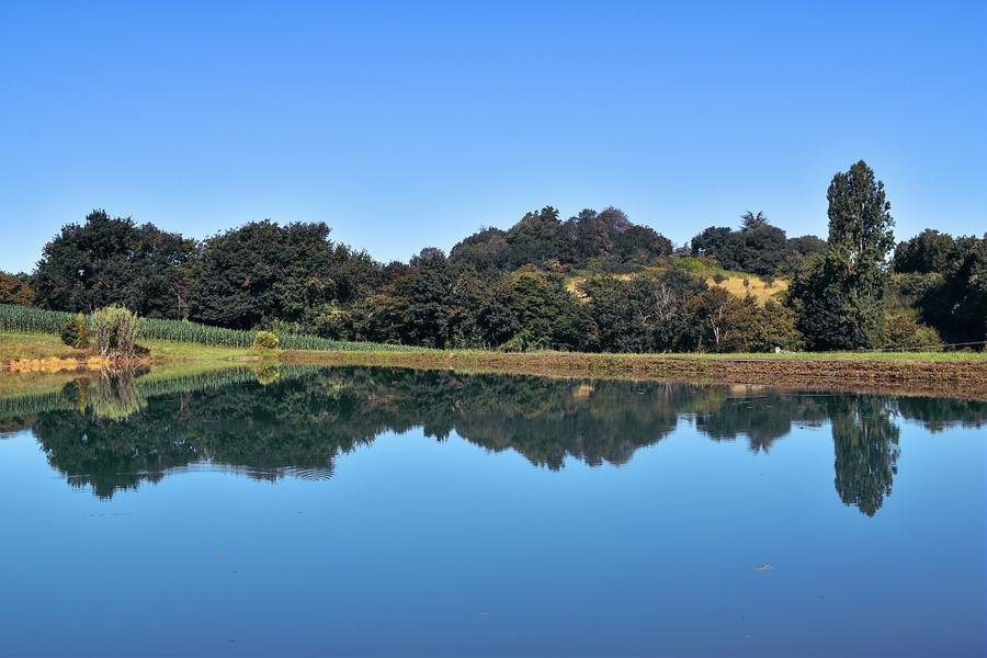 7. A l’étang, dont il est possible faire le tour, poursuivre le circuit en tournant à gauche et remonter le chemin en terre. A la route, tourner à droite puis prendre la prochaine voie enherbée à droite. Suivre ce chemin qui fait le tour de l’étang par l’extérieur.