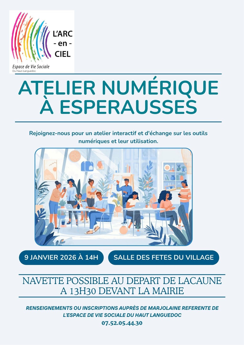 Votre Espace de Vie Sociale intercommunal vous propose un atelier numérique à Espérausses vendredi 9 janvier.