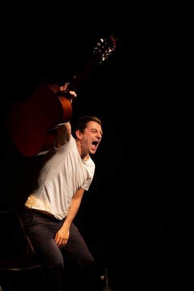 Sa voix surprend, sa guitare déraille parfois, ses textes frappent juste. Sur scène, il joue des contrastes avec un sens aigu du rythme et de la rupture : on rit, on doute, on s’arrête, puis on repart.