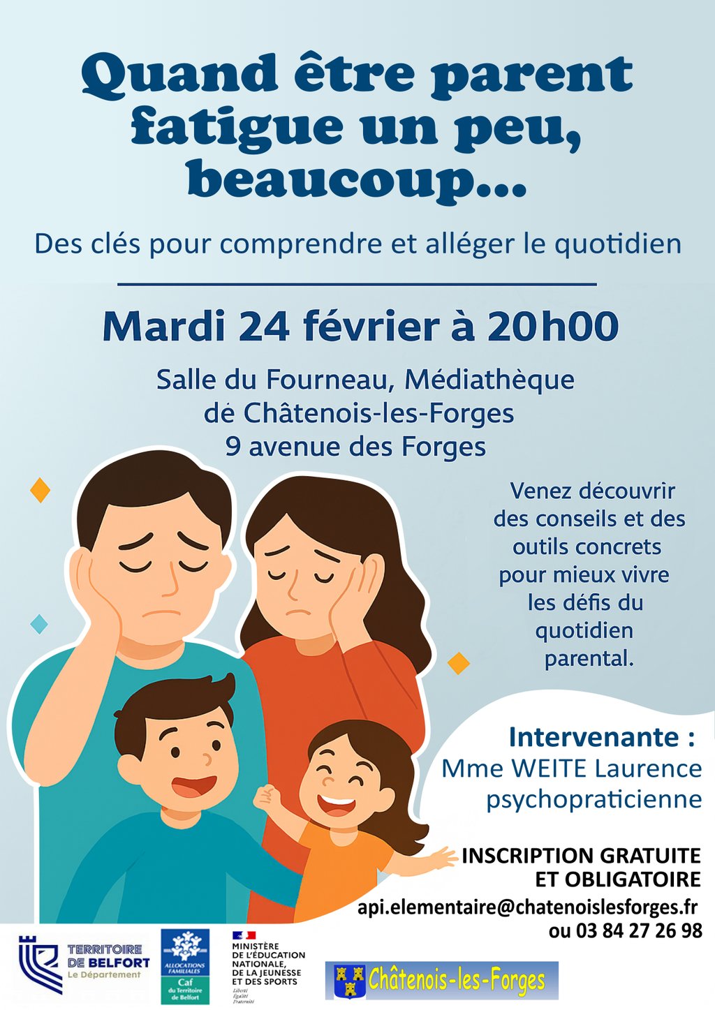 Rendez-vous à CHATENOIS-LES-FORGES mardi 24 février 2026 à 20h00 pour une soirée parents.