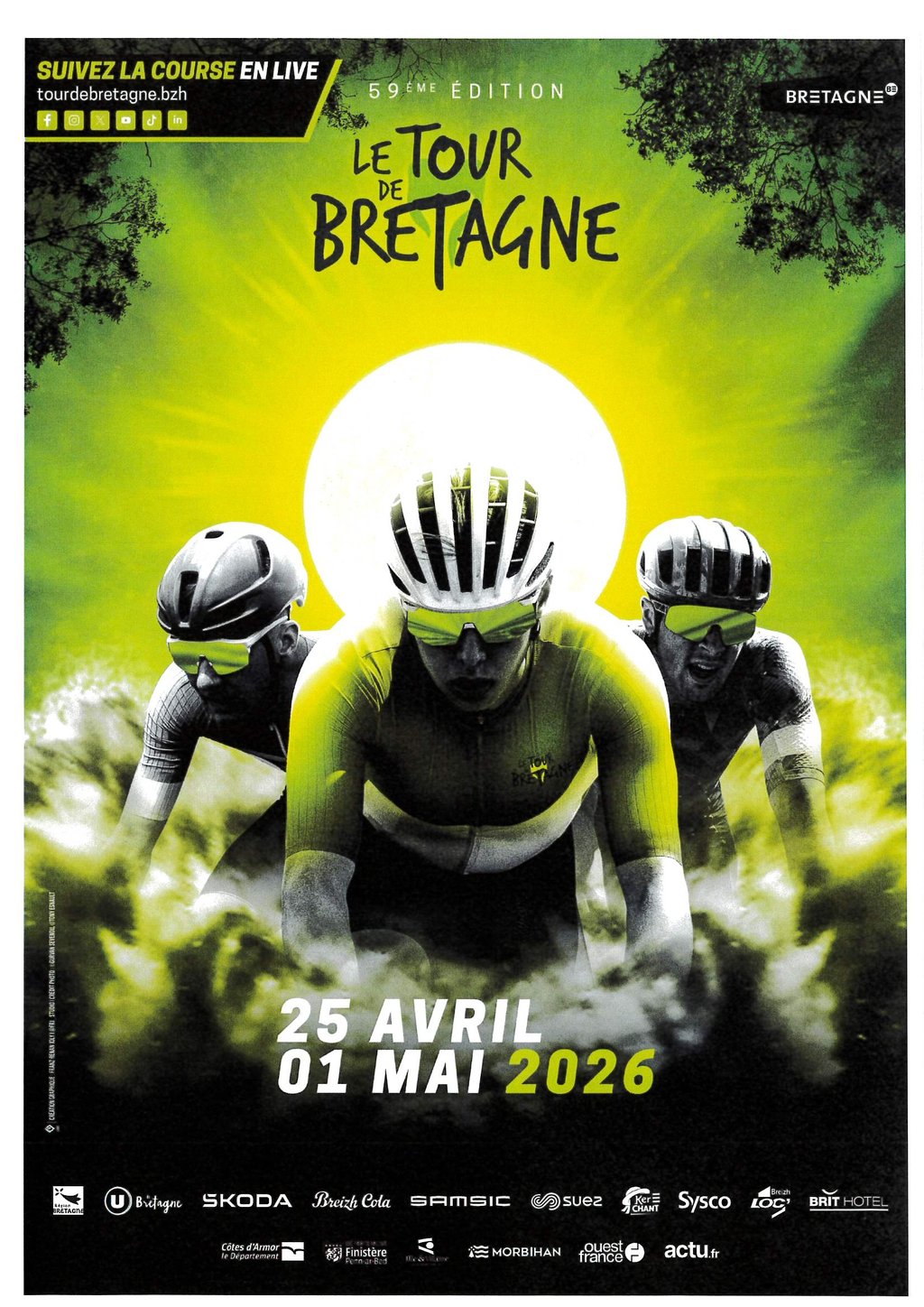 Nous vous informons que le parcours de l'étape PLOËRMEL - BRIEC-DE-L'ODET aura lieu le mardi 28 avril 2026 et passera au nord de la Commune de Berné.