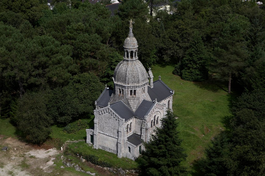Erigée sur une hauteur boisée, la chapelle du Sacré-Cœur domine un paysage composé de forêts et de vallons.