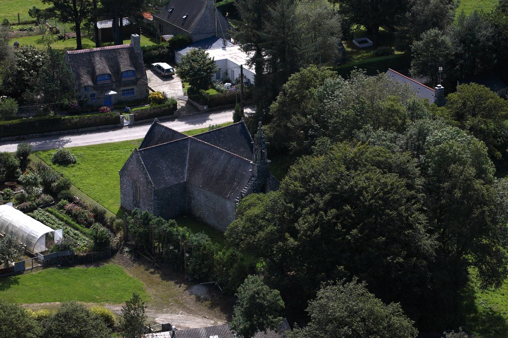 La façade sud est percée d'une porte à arc plein-cintre, d'une autre à arc brisé ainsi que d'une fenêtre à arc brisé. On retrouve un décor à archivolte et des sculptures de figures humaines. On voit aussi, au milieu du mur, la représentation d'un ange tenant une banderole. Les armes des fondateurs de la chapelle, les Malestroit, seigneurs de Pont-Calleck, demeurent toujours visibles sur le clocher bien qu'il fut décapité à titre de mesure répressive visant les seigneurs impliqués dans la conspiration de Cellamare en 1720.