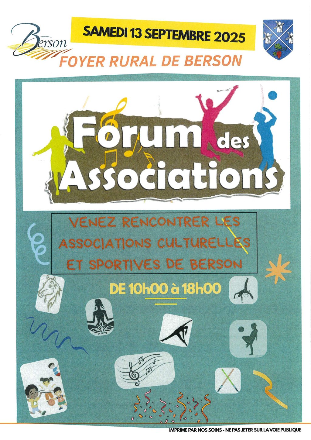 Venez rencontrer nos associations bersonnaises lors du forum des associations le samedi 13 septembre prochain de 10h à 18h.