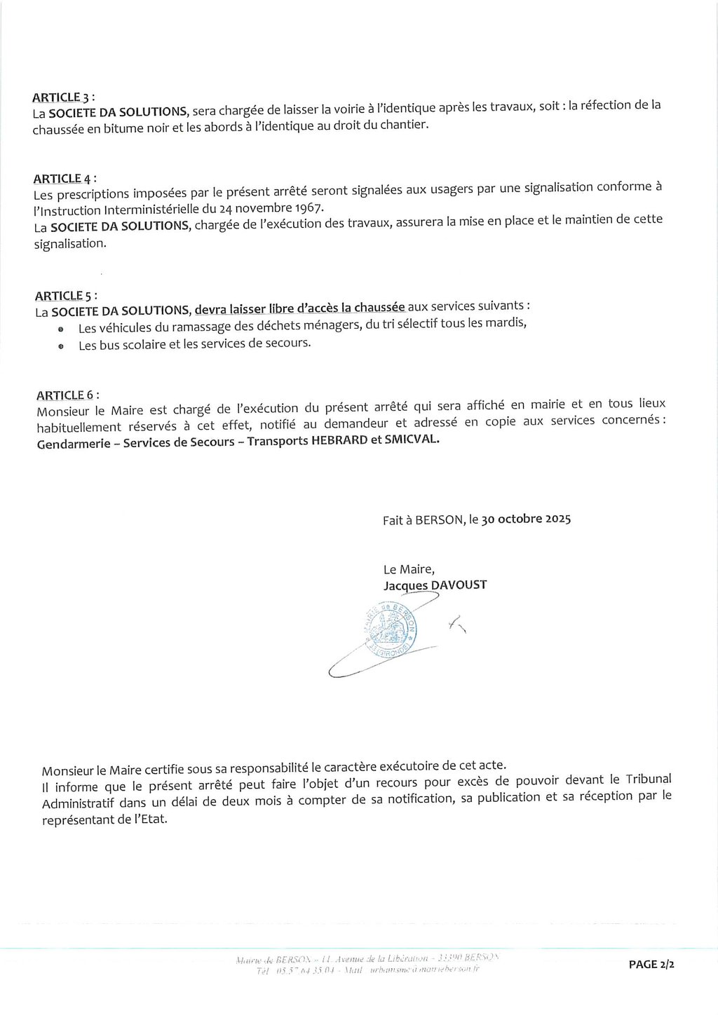ARRETE MUNICIPAL RELATIF A DES TRAVAUX DE VOIRIE