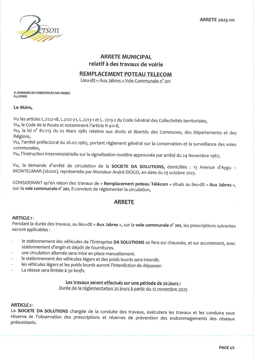 Durée de la réglementation : 20 jours à partir du12 novembre 2025.