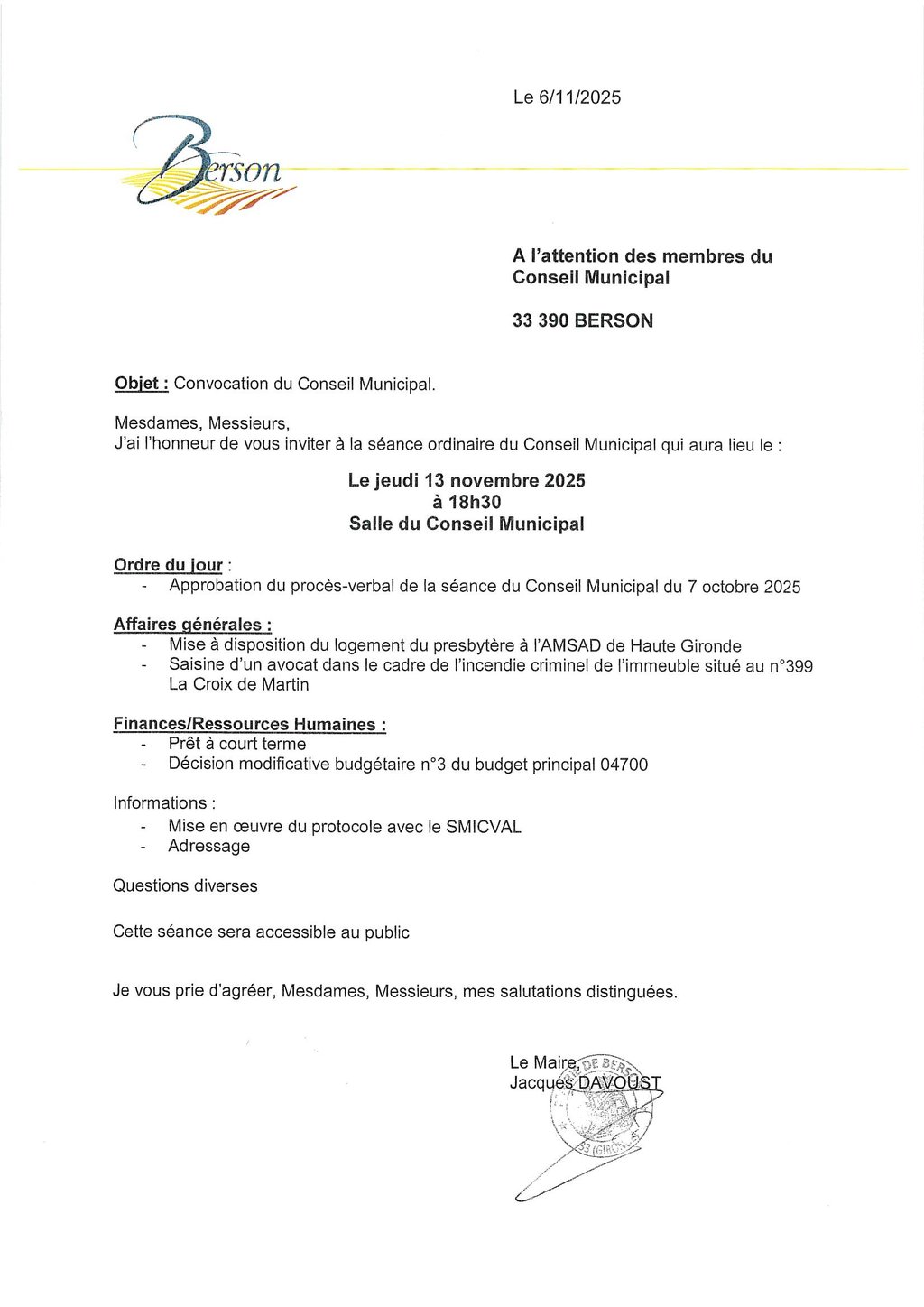 📅 Réunion du Conseil Municipal le jeudi 13 novembre dans la Salle du Conseil.