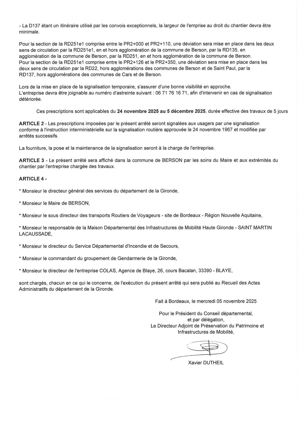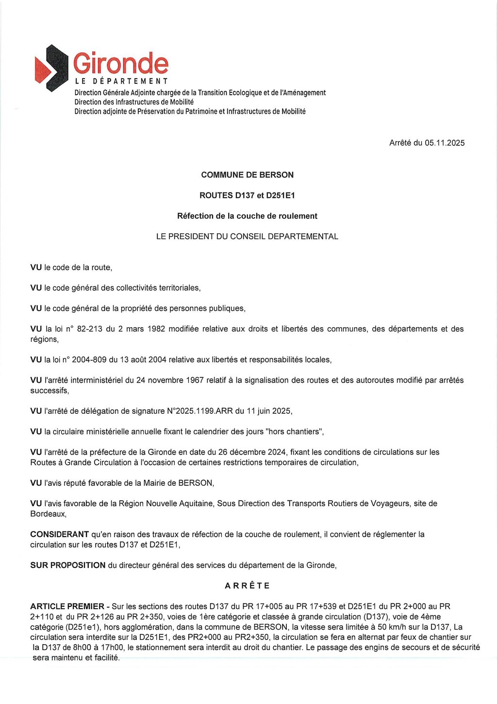 TRAVAUX D137 ET D251E1 DU 24 NOVEMBRE AU 5 DÉCEMBRE