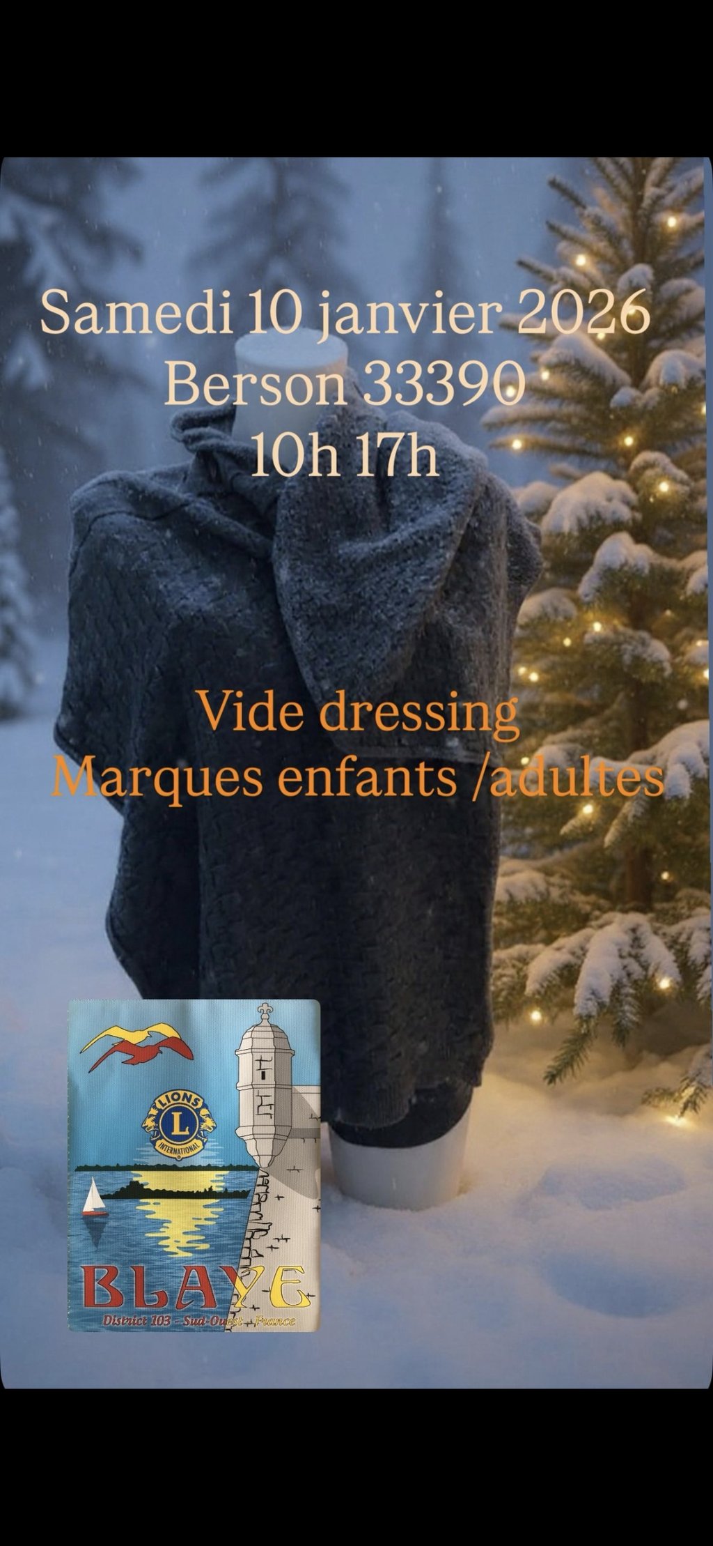 Le Lion's club de Blaye organise son vide-dressing, marques enfants/adultes, au foyer rural de Berson, demain samedi 10 janvier de 10h à 17h.