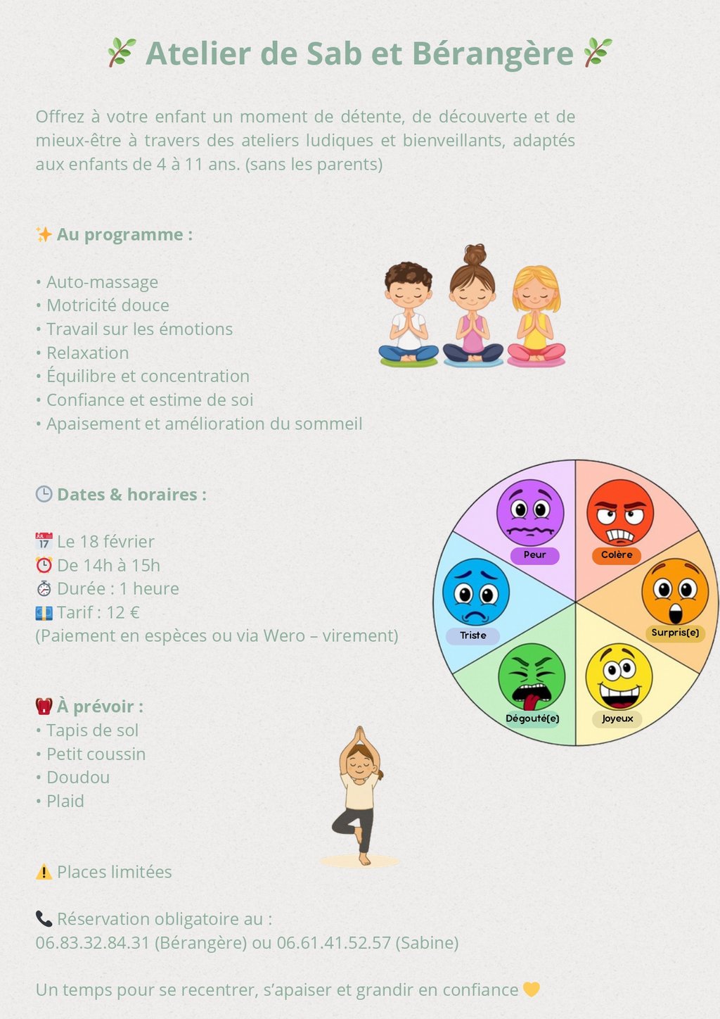 Atelier détente et relaxation pour enfants de 4 à 11 ans proposé par Sab et Bérangère