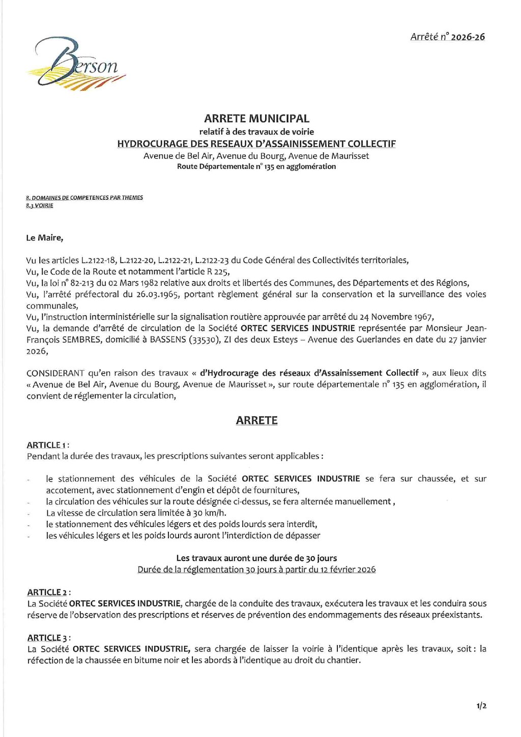 [INFORMATION] ⚠travaux de voirie «Hydrocurage des réseaux d'assainissement collectif" ⚠