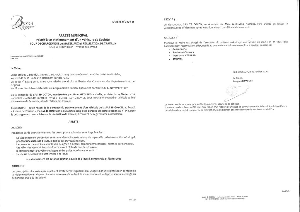 Publié le vendredi 20 février 2026 - Berson
