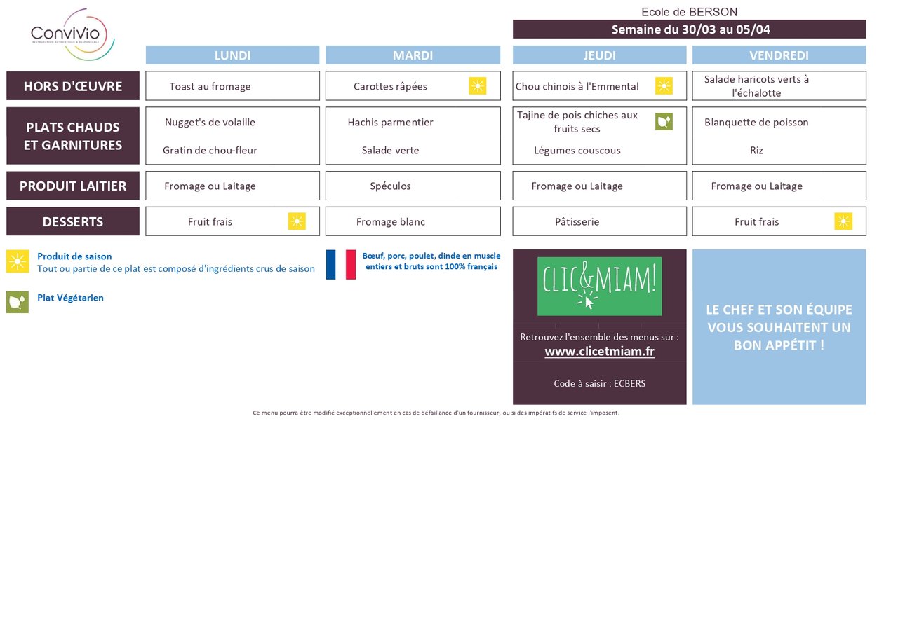 MENUS DU 30 MARS AU 3 AVRIL 2026