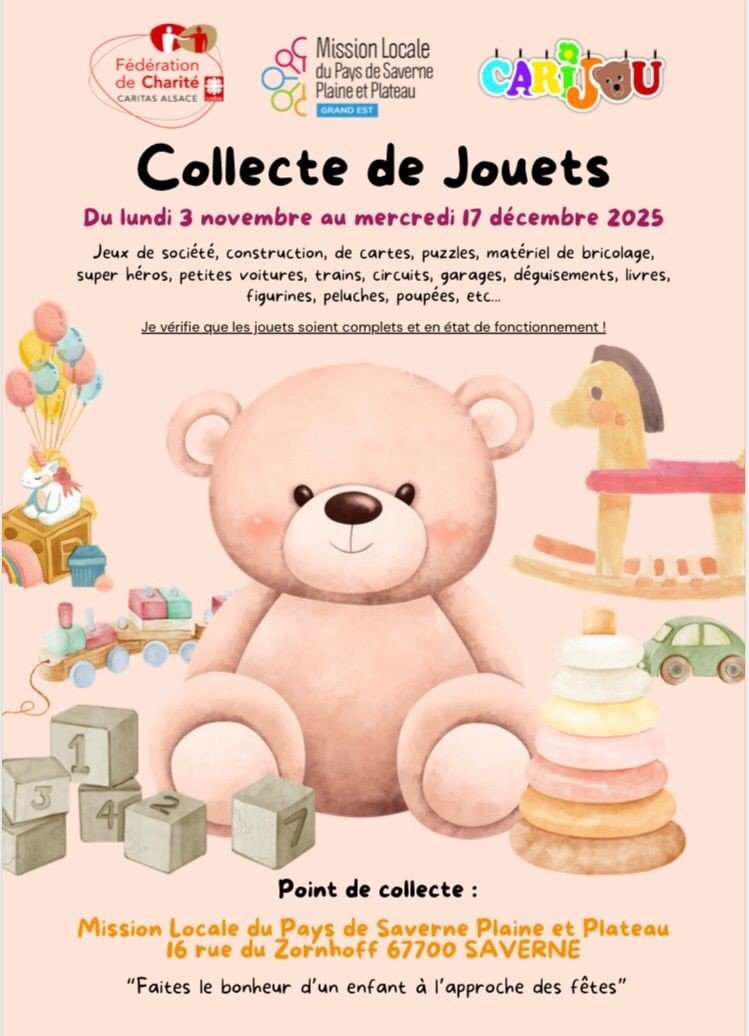 Une grande collecte de jouets est organisée et sera remise à ‘’Carijou’’ qui est l'un des chantiers d’insertion de la Fédération de Charité Caritas Alsace.